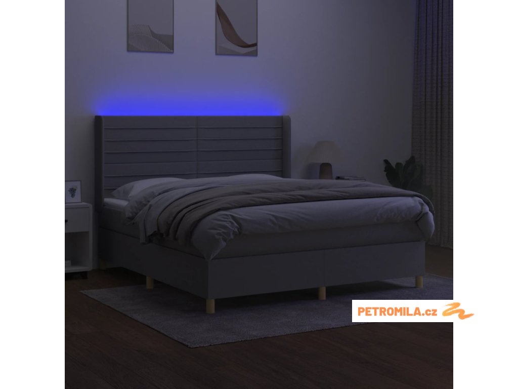 Box spring postel s matrací a LED světle šedá 160x200 cm textil