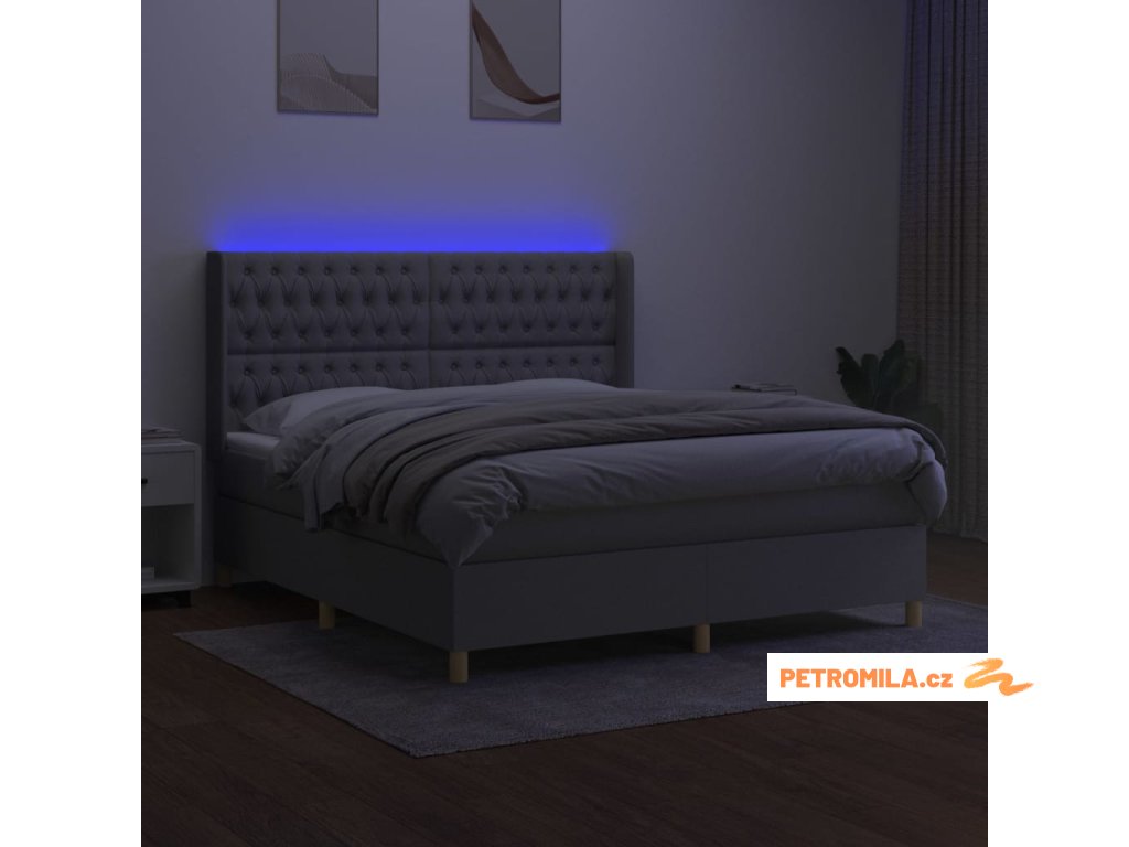 Box spring postel s matrací a LED světle šedá 160x200 cm textil