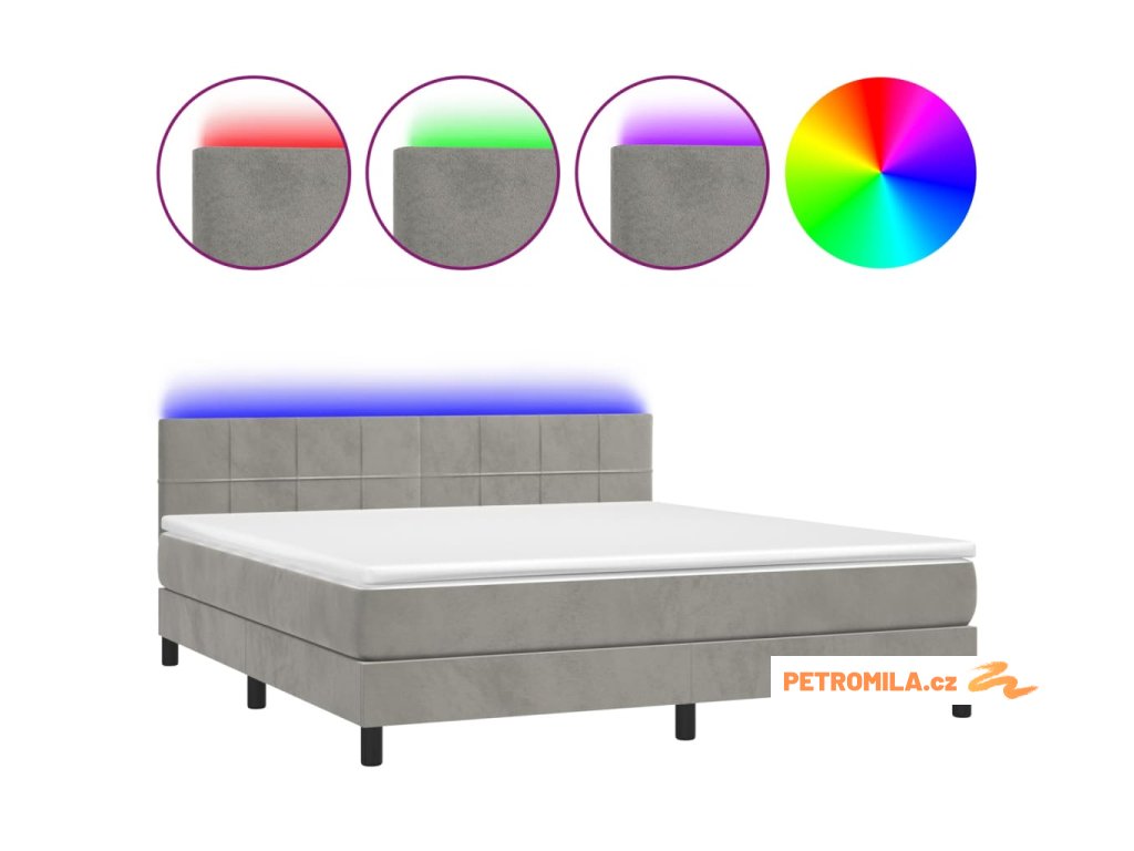 Box spring postel s matrací a LED světle šedá 180x200 cm samet