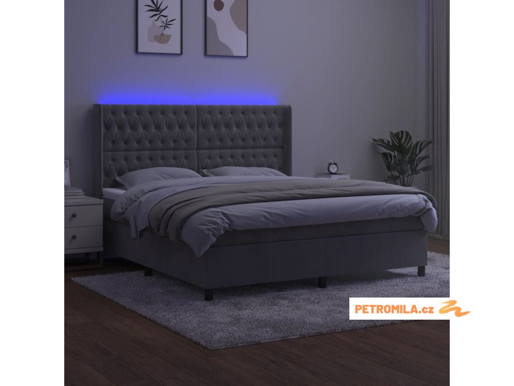 Box spring postel s matrací a LED světle šedá 180x200 cm samet