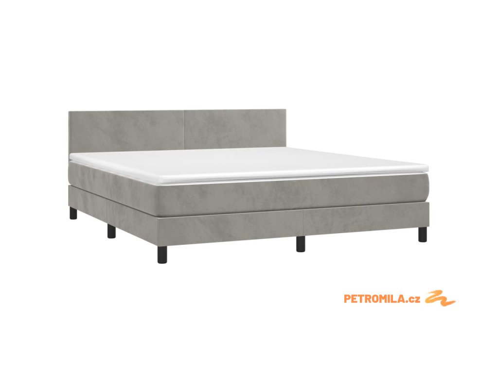 Box spring postel s matrací a LED světle šedá 180x200 cm samet