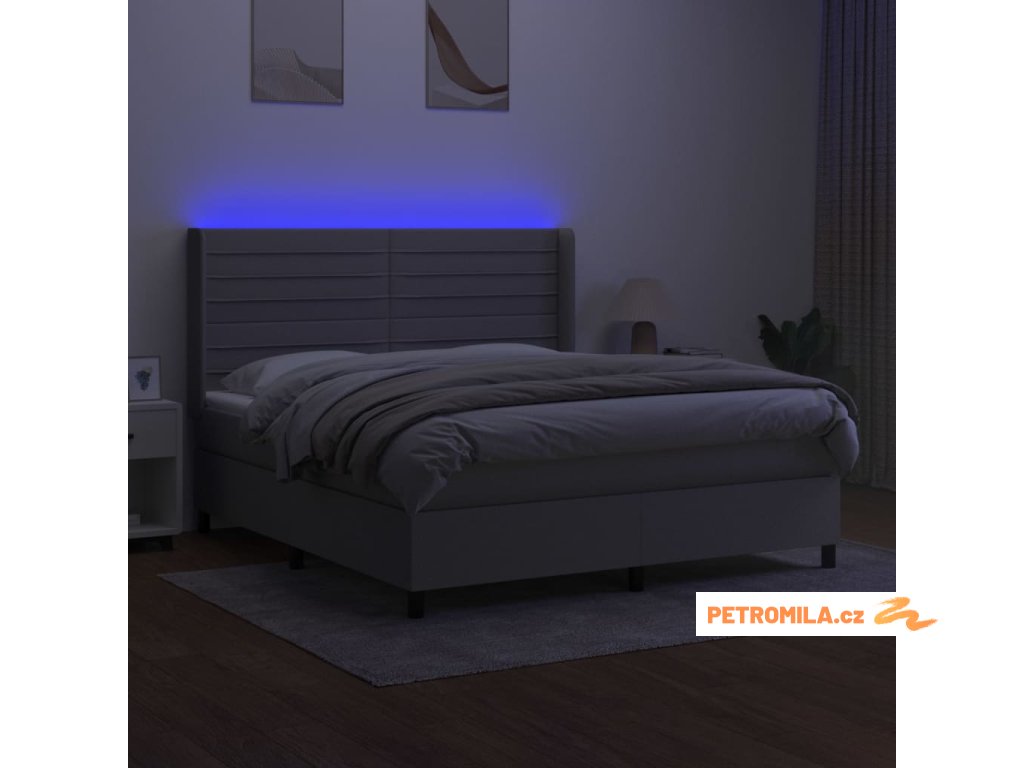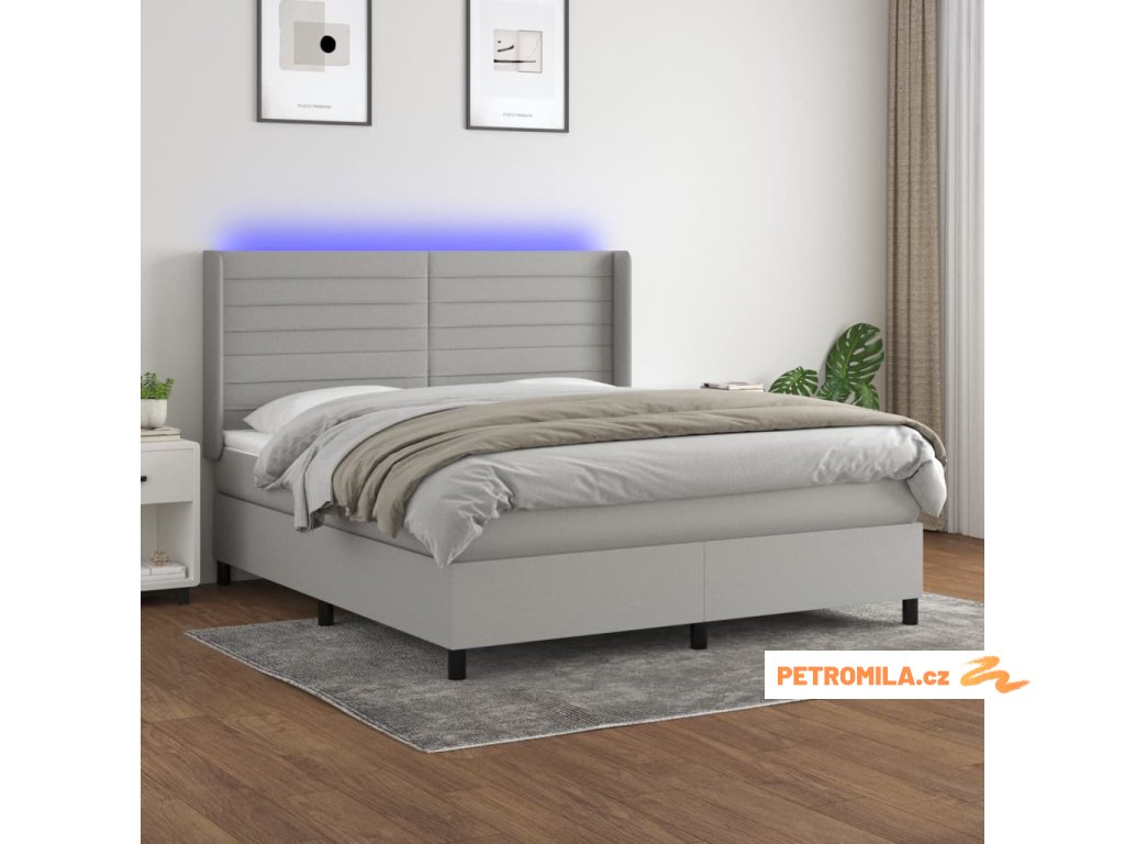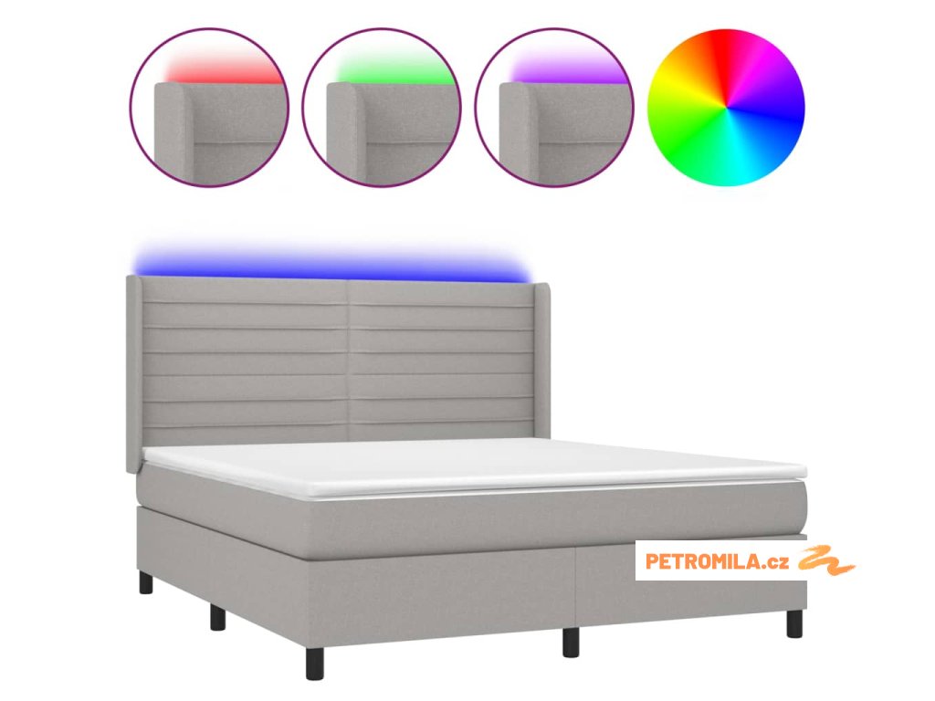 Box spring postel s matrací a LED světle šedá 180x200 cm textil