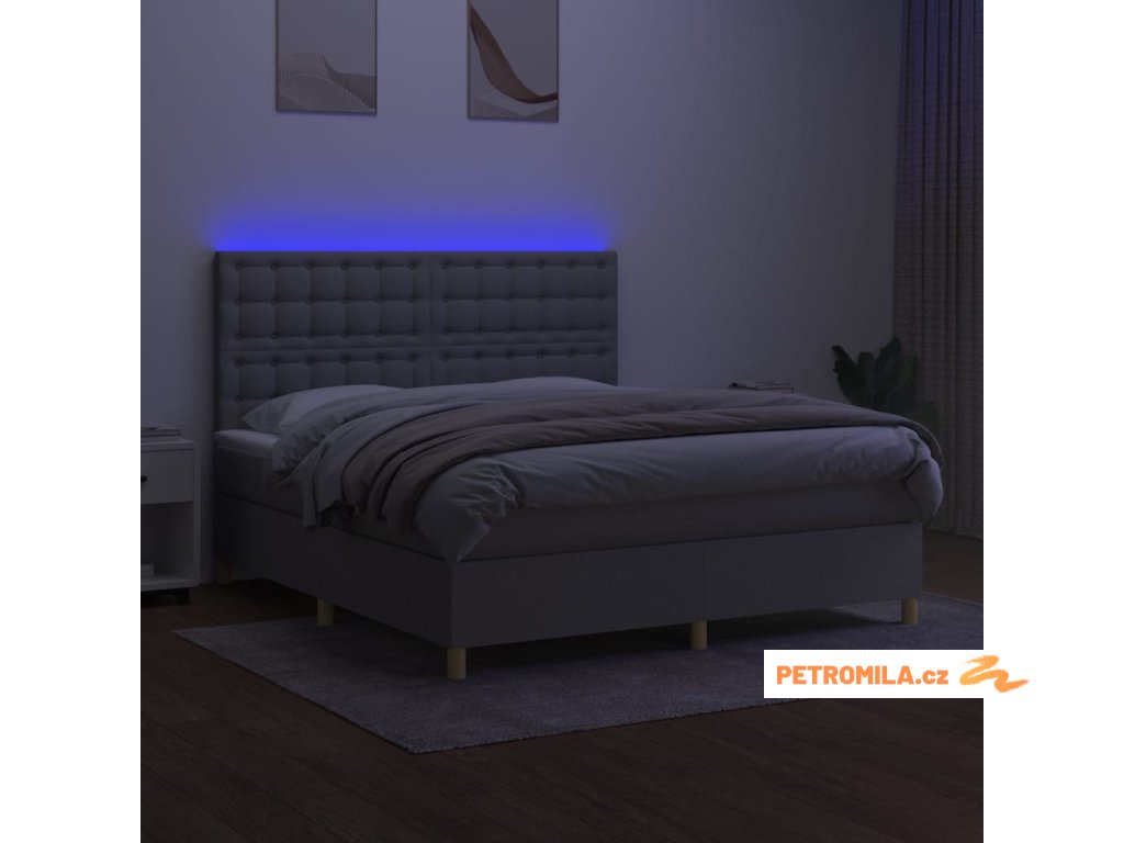 Box spring postel s matrací a LED světle šedá 180x200 cm textil