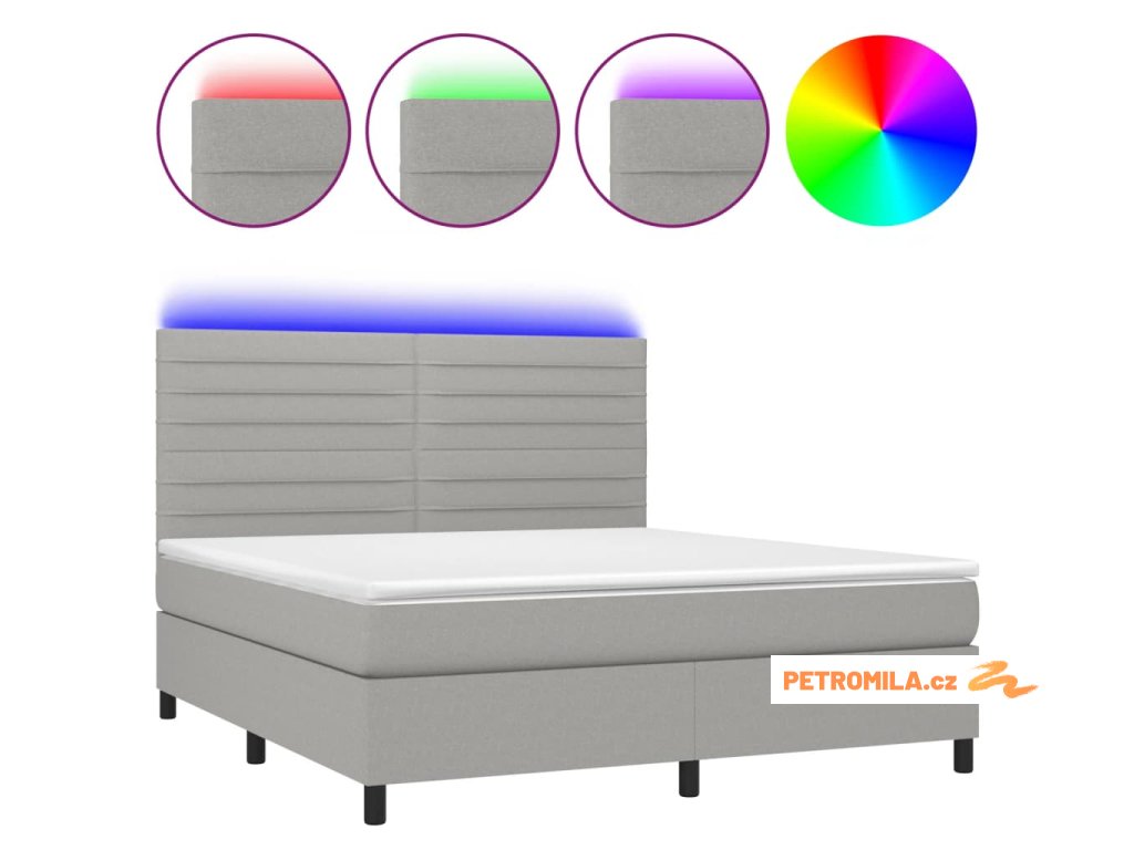 Box spring postel s matrací a LED světle šedá 180x200 cm textil