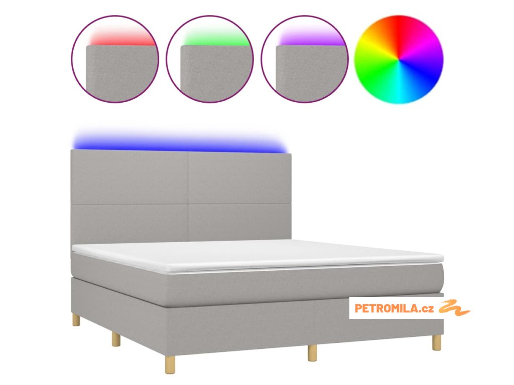 Box spring postel s matrací a LED světle šedá 180x200 cm textil