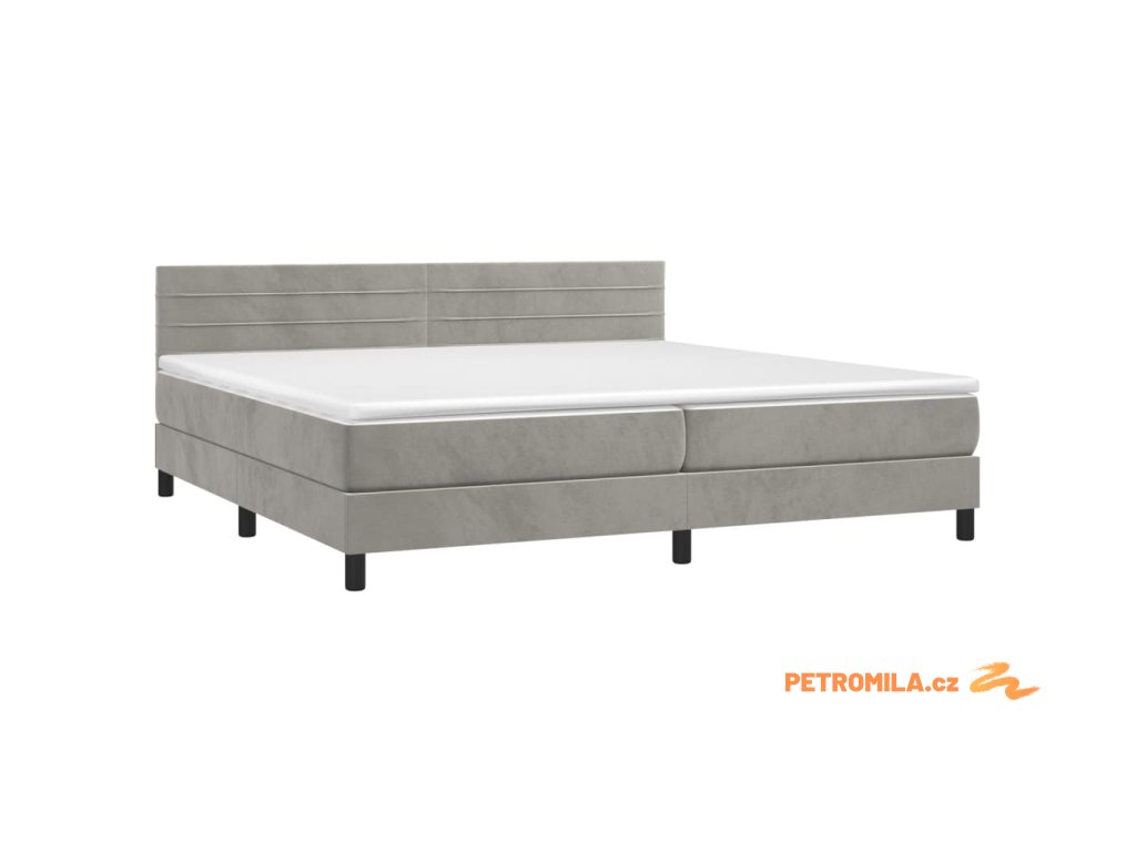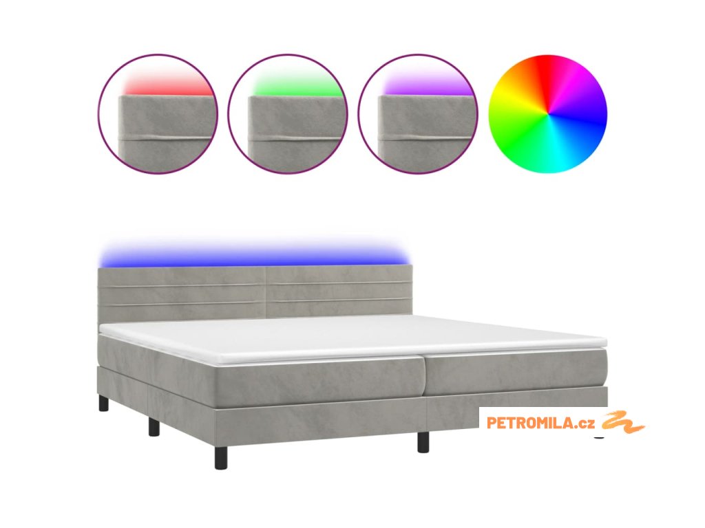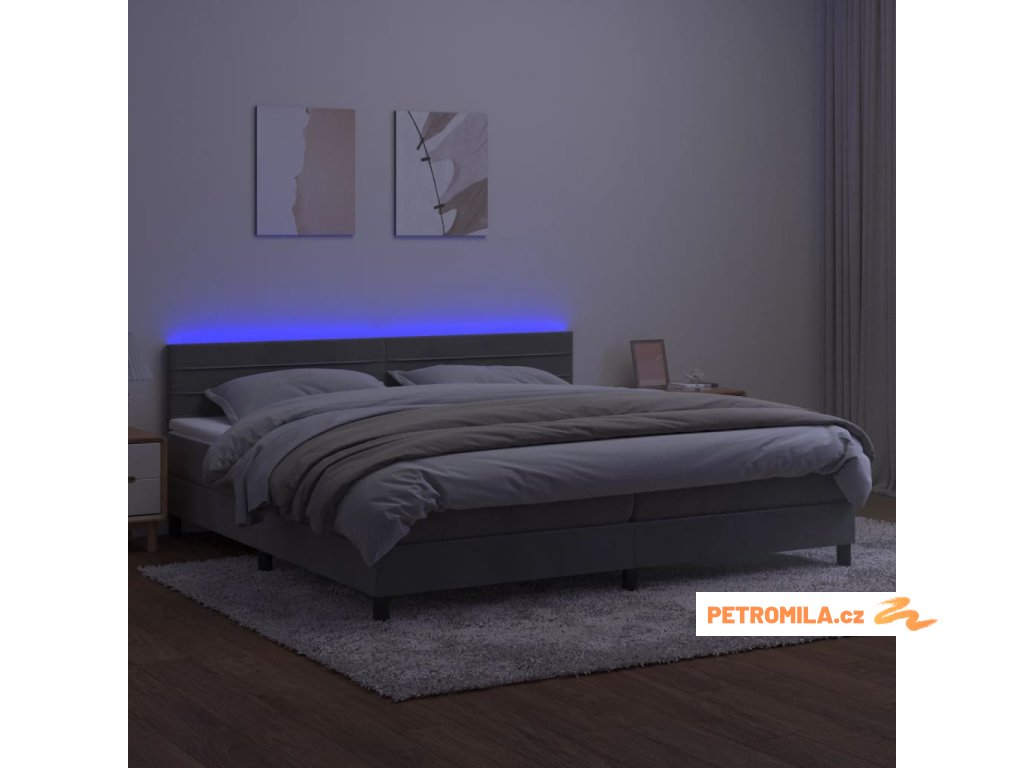 Box spring postel s matrací a LED světle šedá 200x200 cm samet