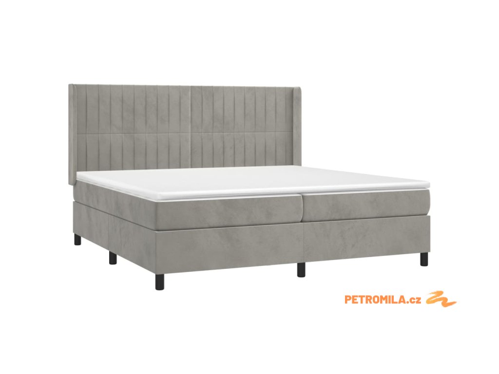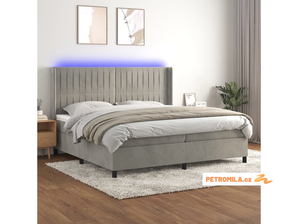 Box spring postel s matrací a LED světle šedá 200x200 cm samet