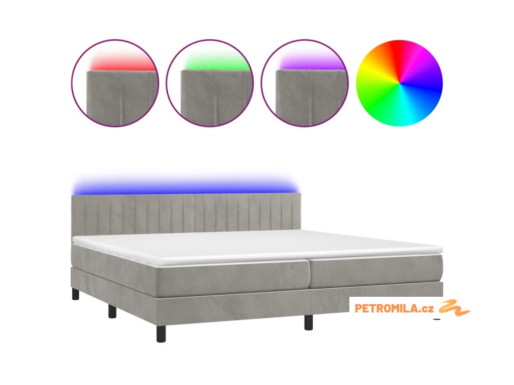 Box spring postel s matrací a LED světle šedá 200x200 cm samet