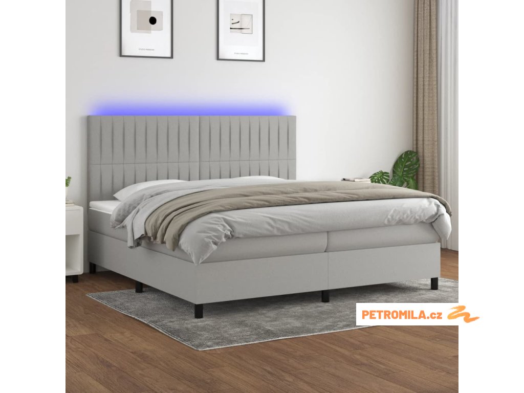 Box spring postel s matrací a LED světle šedá 200x200 cm textil