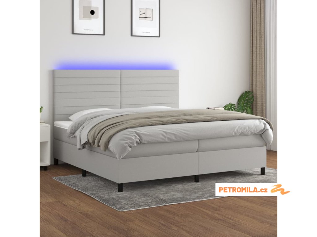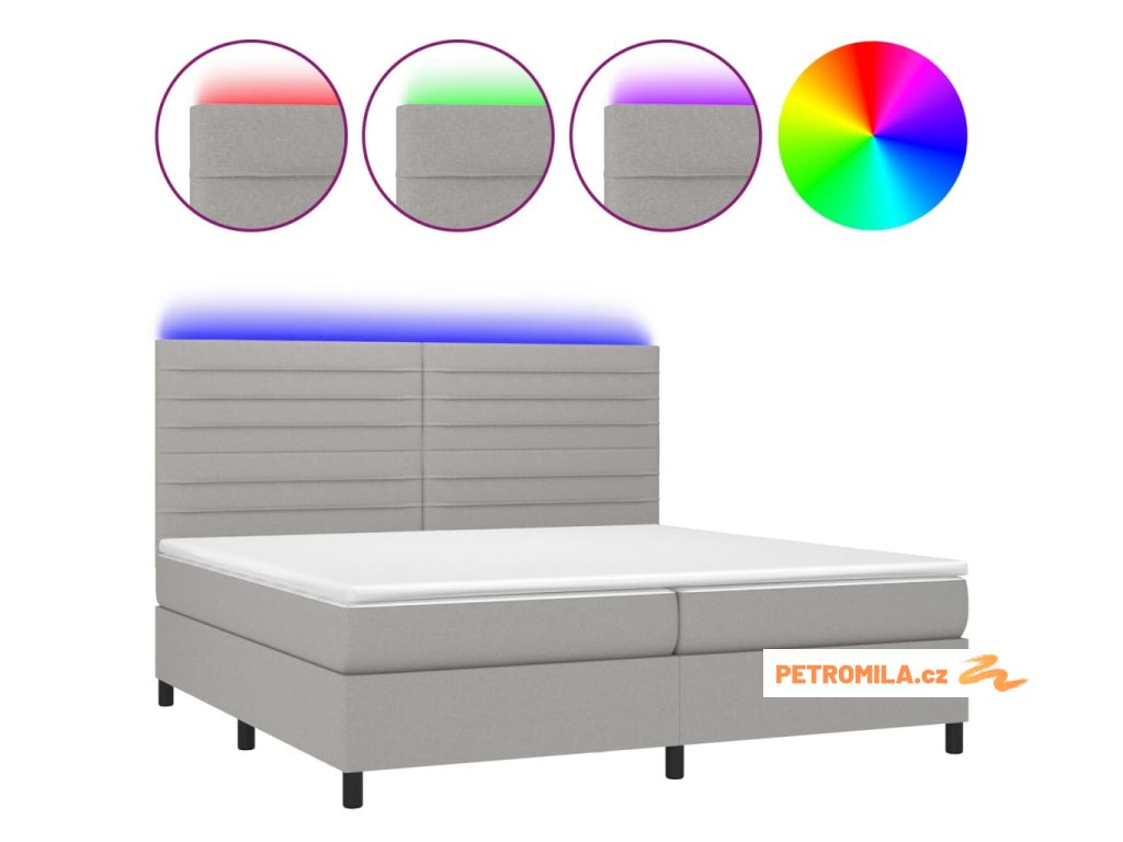 Box spring postel s matrací a LED světle šedá 200x200 cm textil