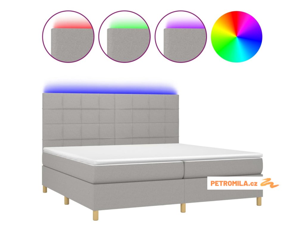 Box spring postel s matrací a LED světle šedá 200x200 cm textil
