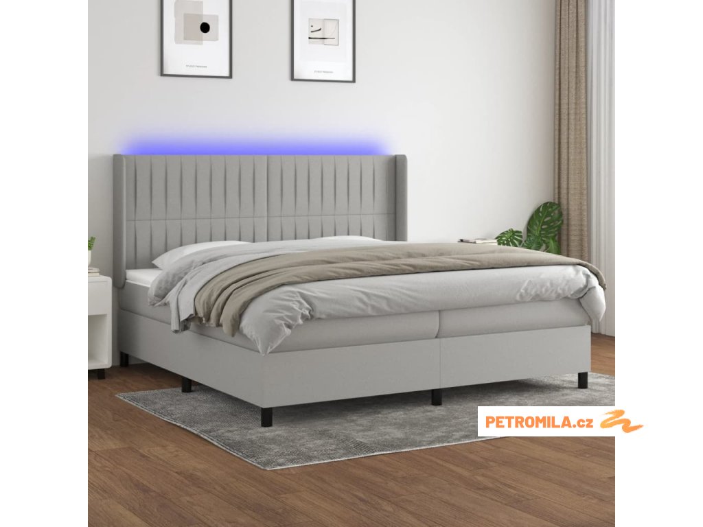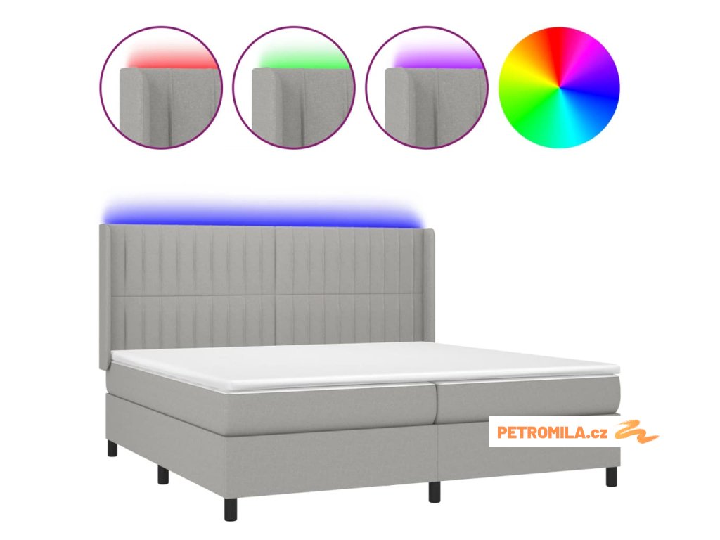 Box spring postel s matrací a LED světle šedá 200x200 cm textil
