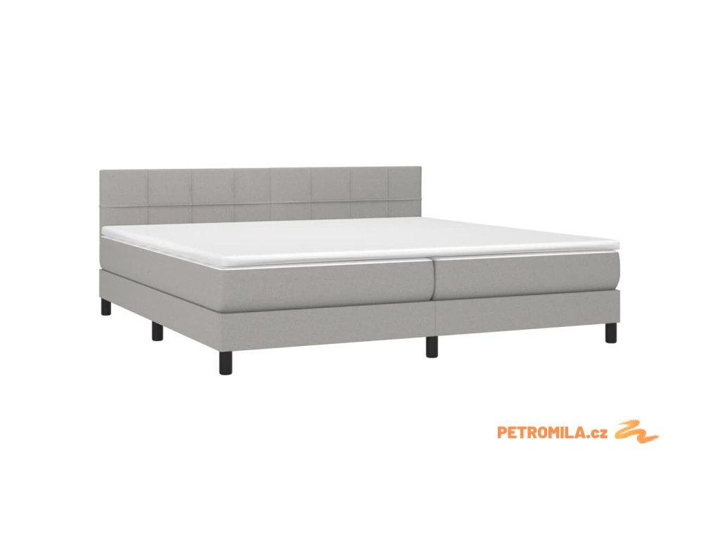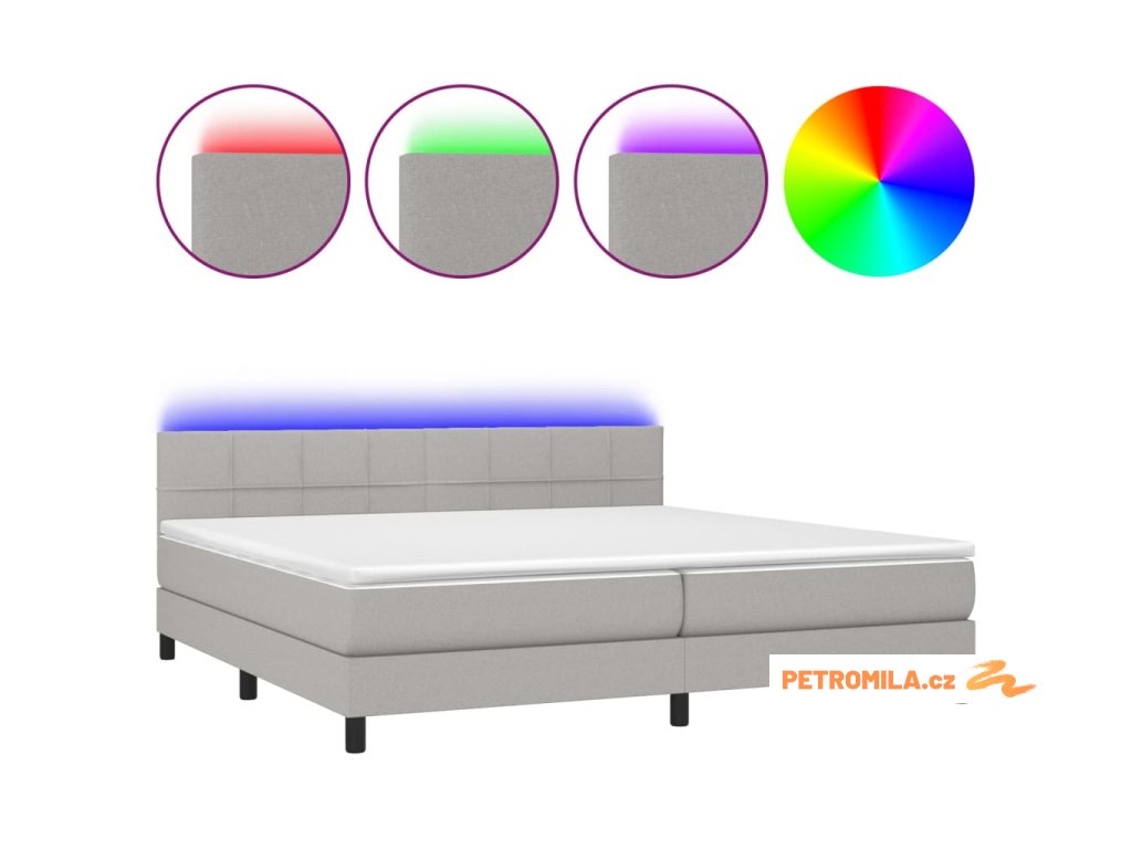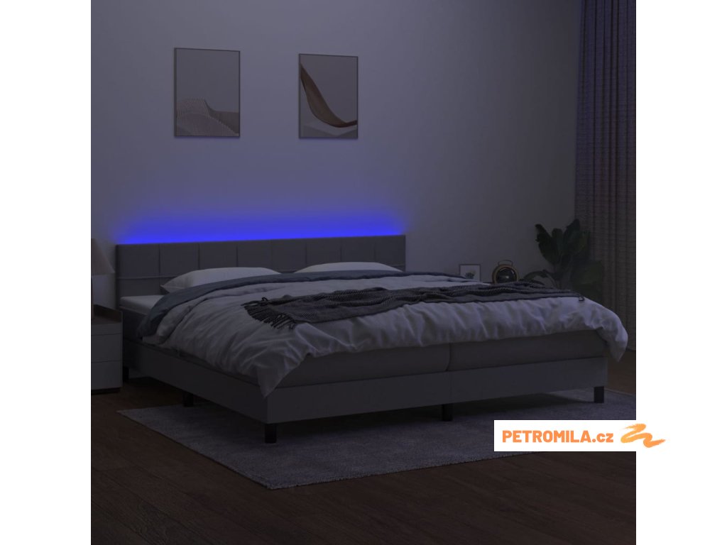 Box spring postel s matrací a LED světle šedá 200x200 cm textil