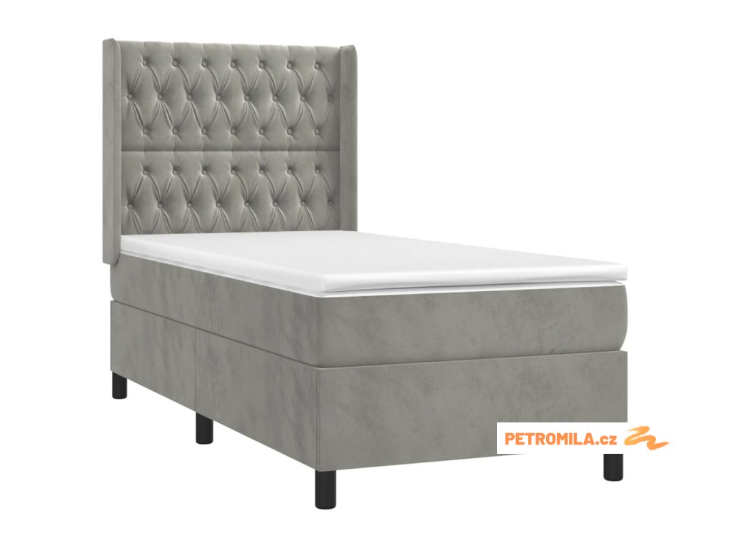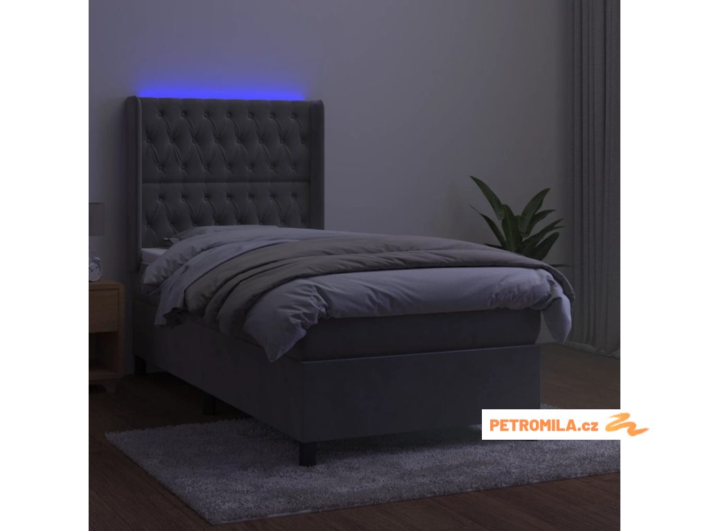 Box spring postel s matrací a LED světle šedá 80 x 200 cm samet