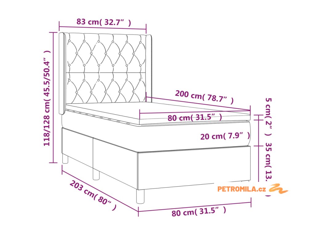 - Celkové rozměry: 203 x 83 x 118/128 cm (D x Š x V)