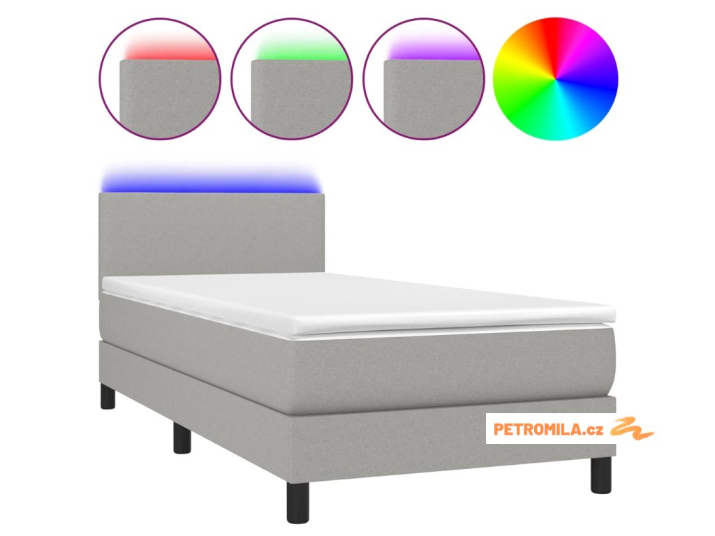Box spring postel s matrací a LED světle šedá 80x200 cm textil