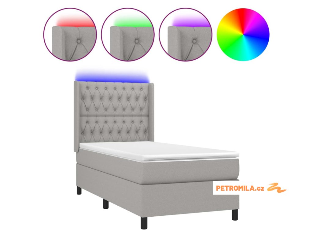 Box spring postel s matrací a LED světle šedá 90x190 cm textil