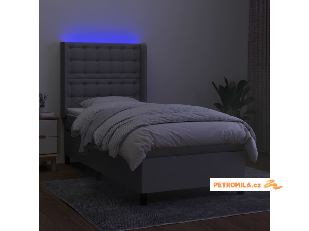 Box spring postel s matrací a LED světle šedá 90x190 cm textil