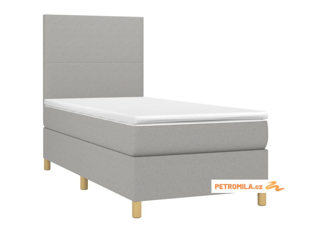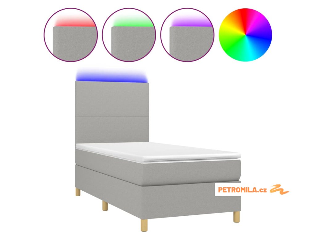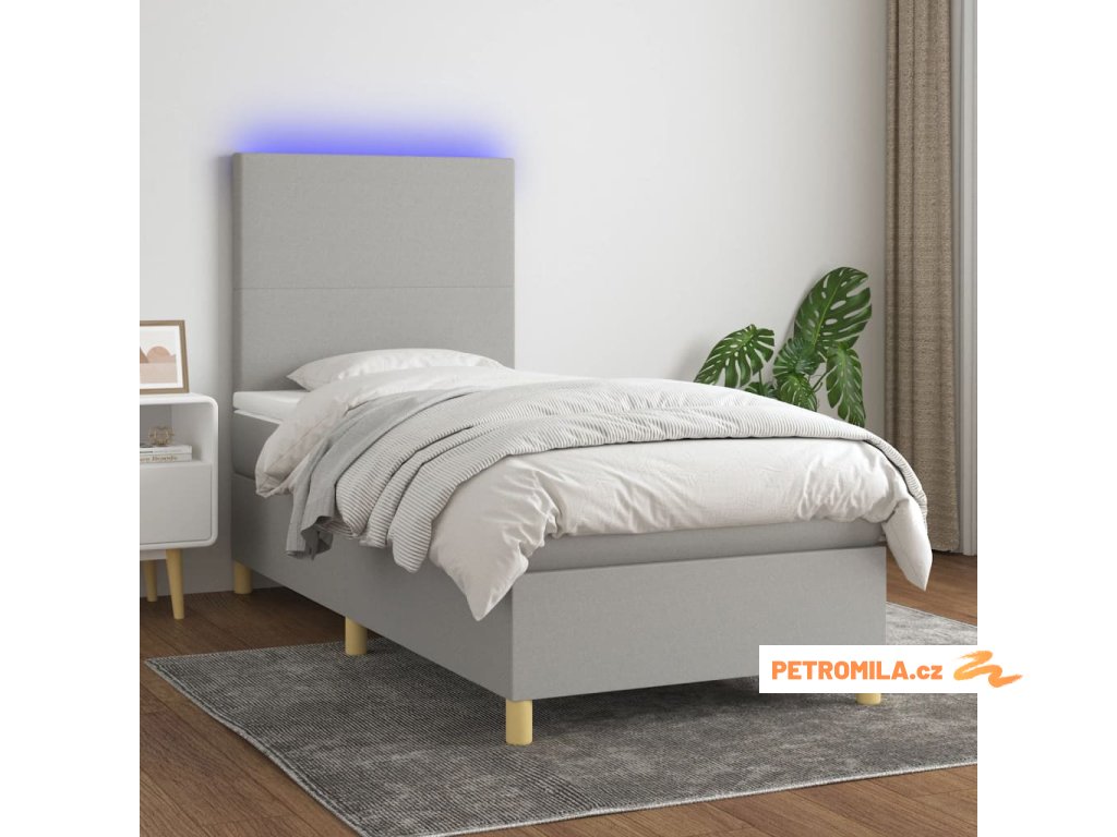 Box spring postel s matrací a LED světle šedá 90x190 cm textil