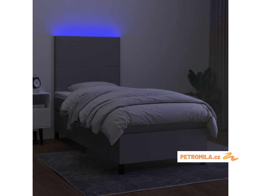Box spring postel s matrací a LED světle šedá 90x190 cm textil