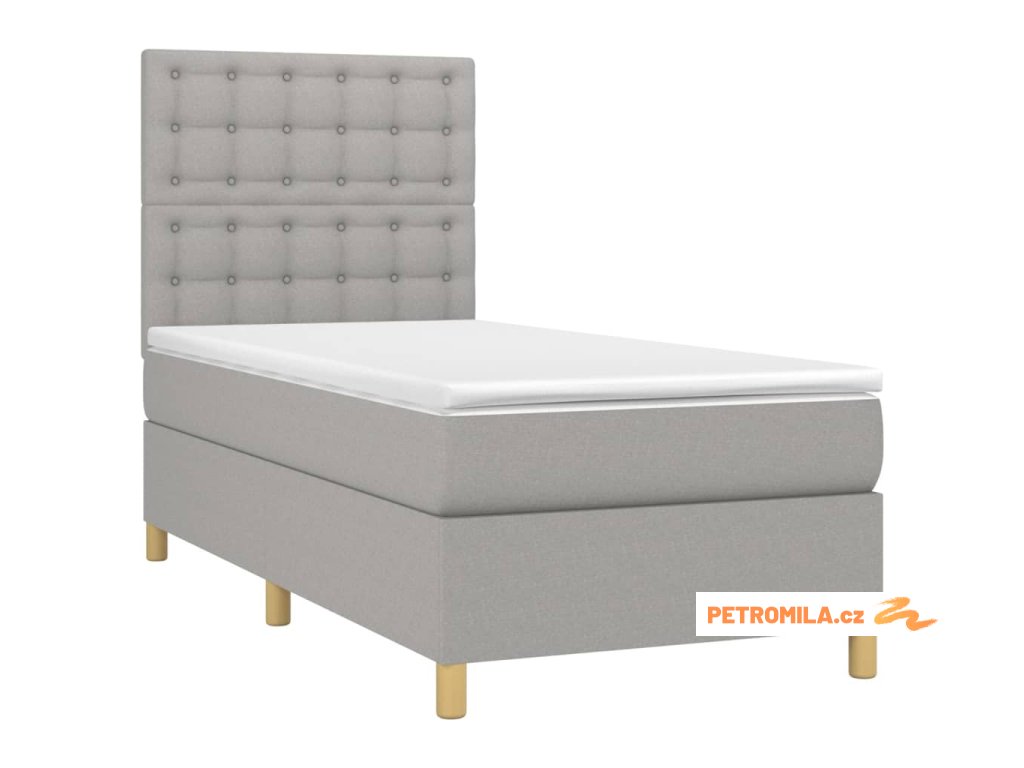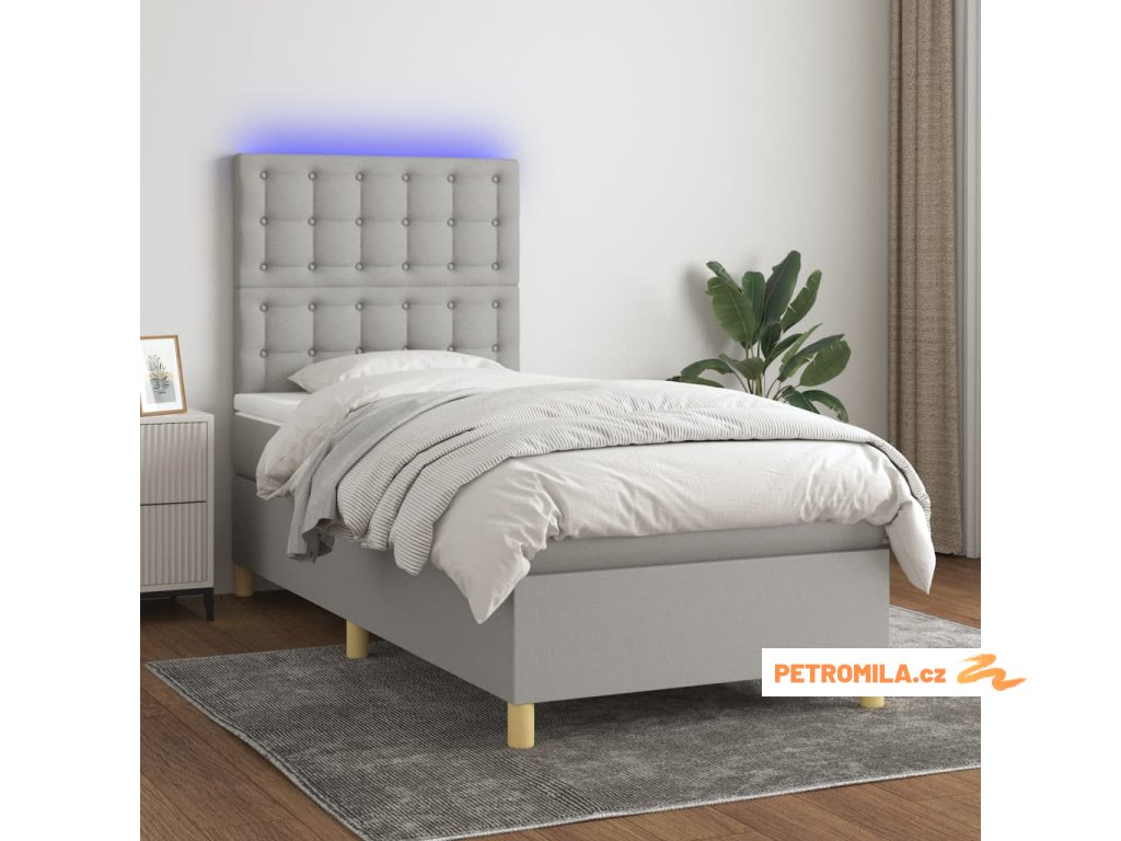 Box spring postel s matrací a LED světle šedá 90x190 cm textil