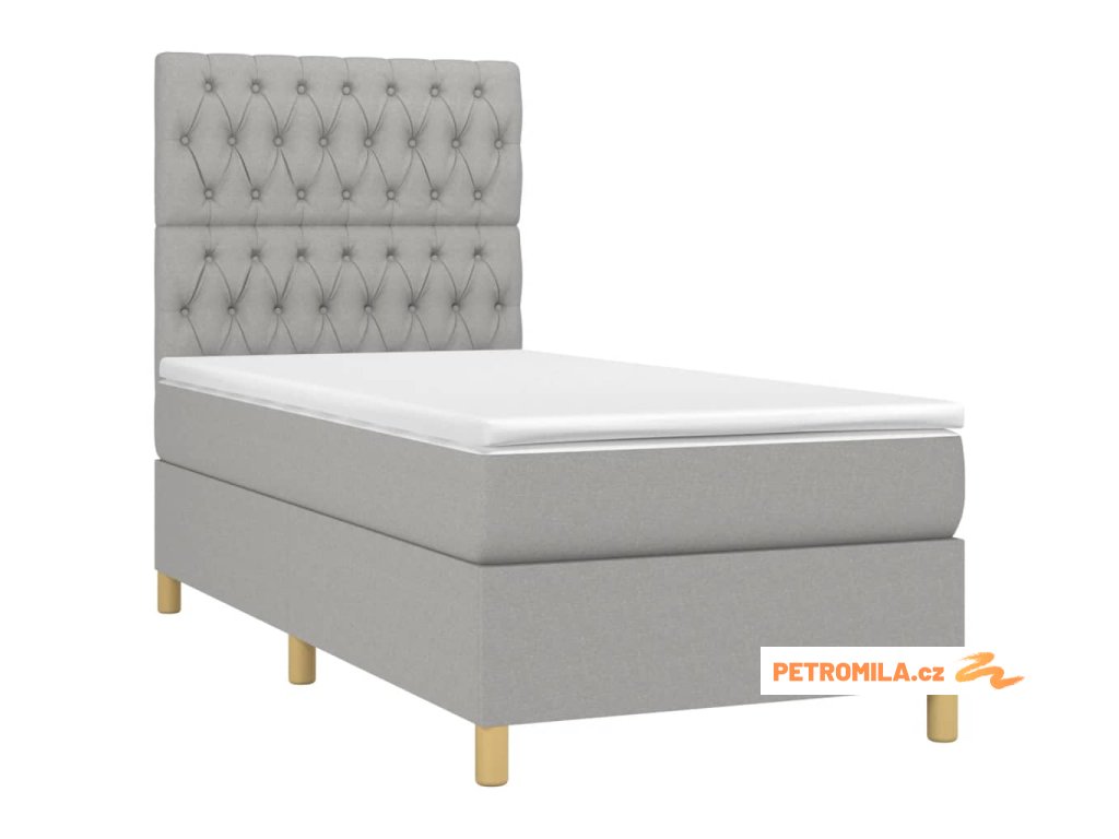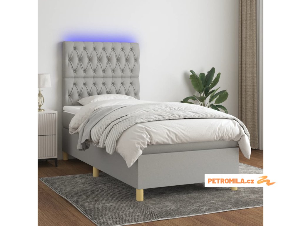 Box spring postel s matrací a LED světle šedá 90x190 cm textil