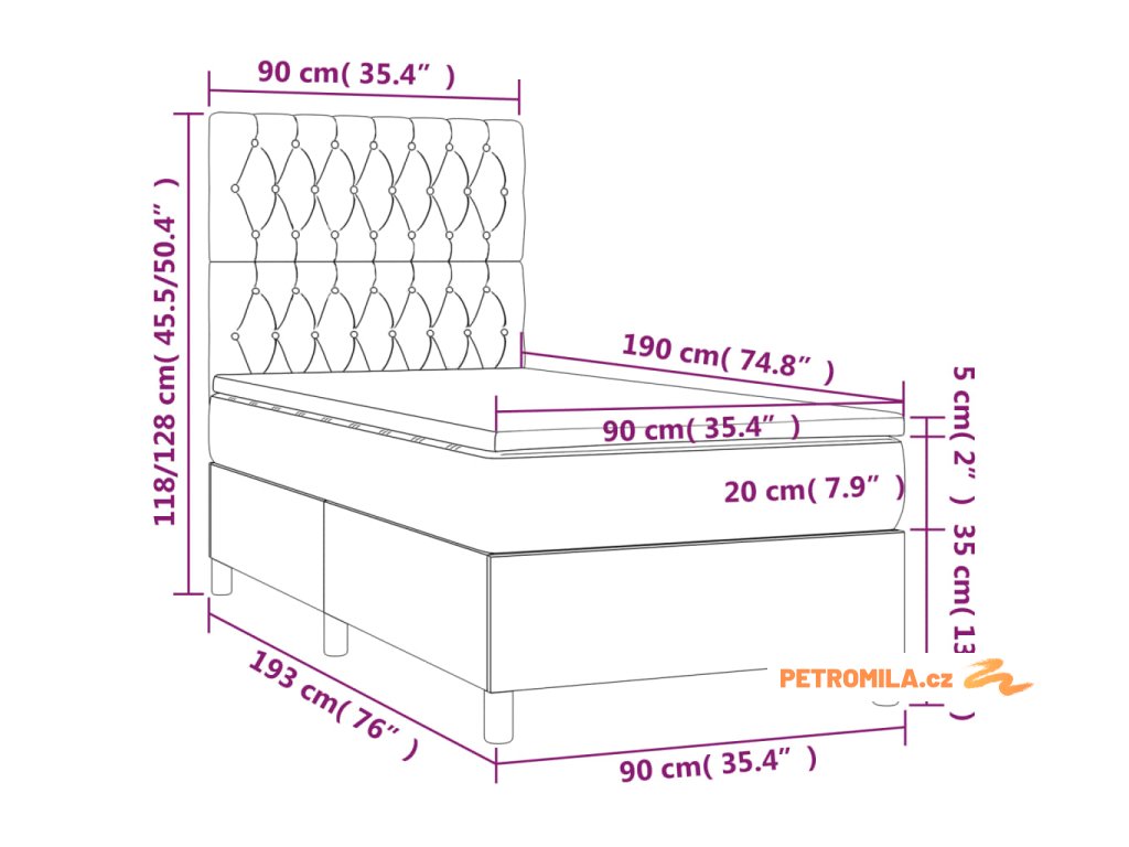 - Rozměry: 90 x 190 x 20 cm (Š x D x V)