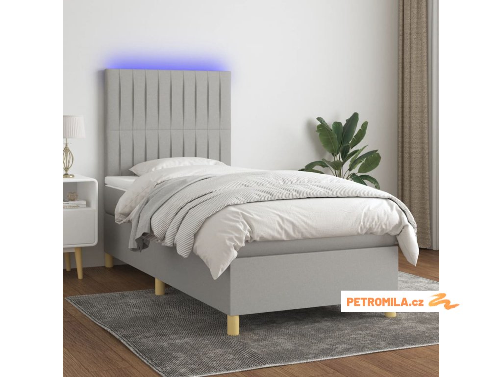 Box spring postel s matrací a LED světle šedá 90x190 cm textil