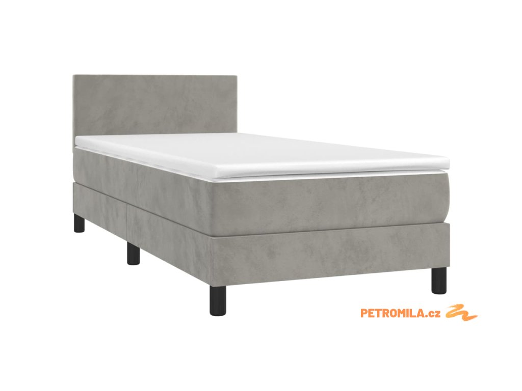 Box spring postel s matrací a LED světle šedá 90x200 cm samet