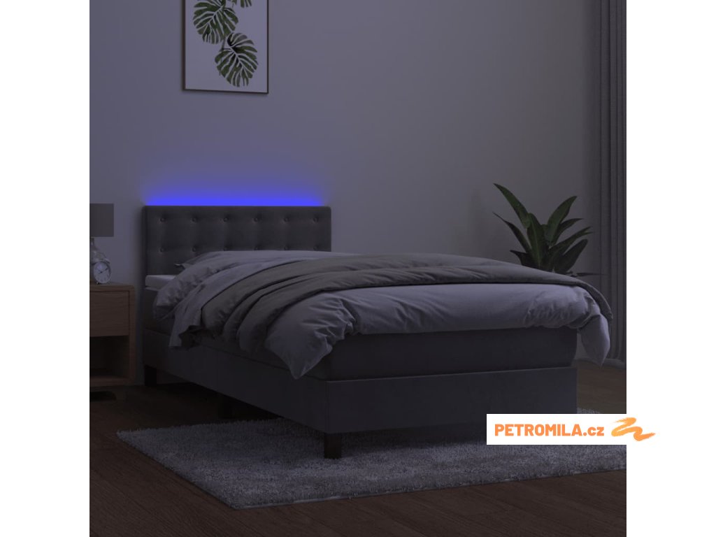 Box spring postel s matrací a LED světle šedá 90x200 cm samet
