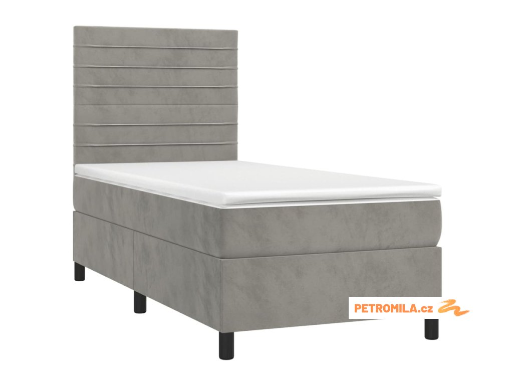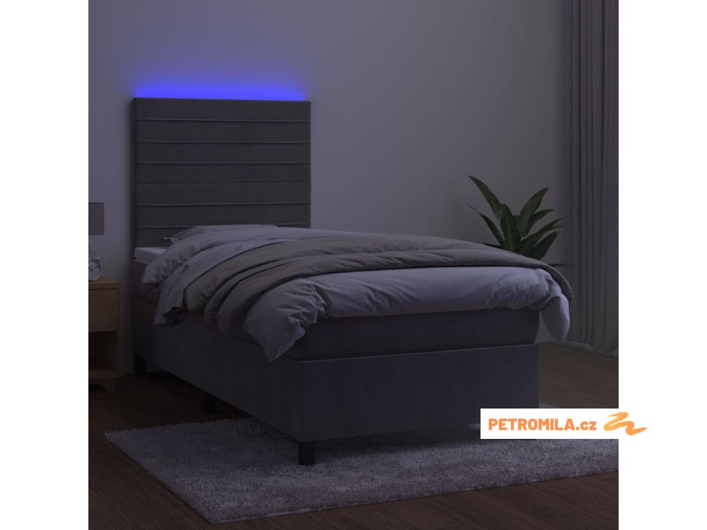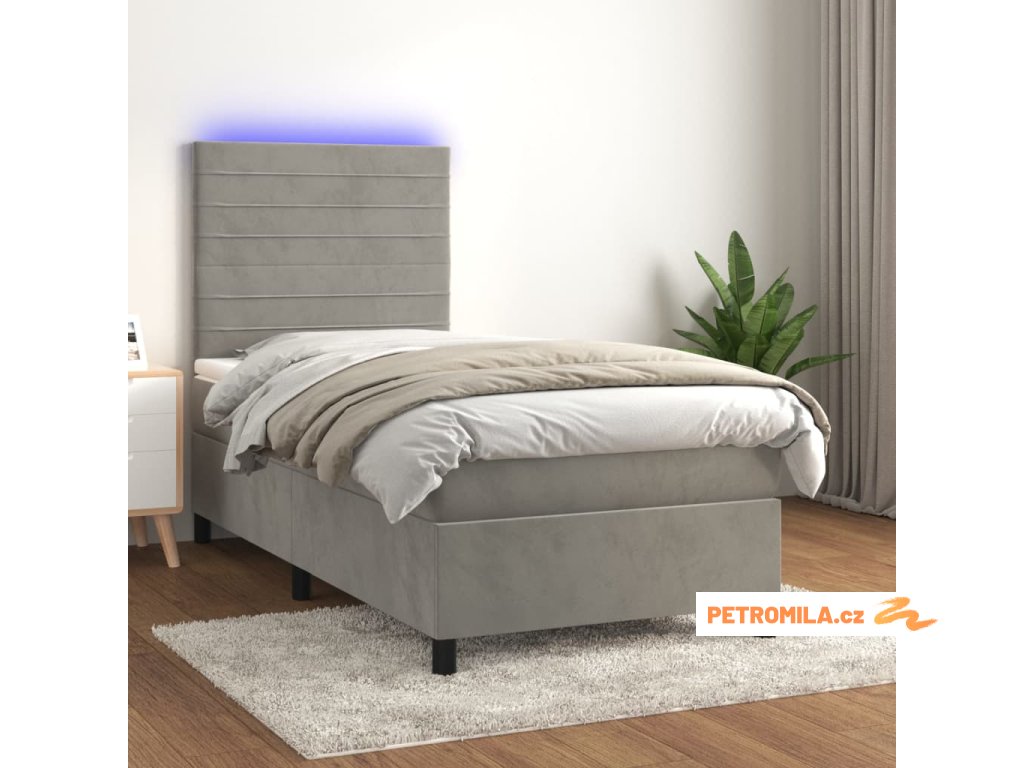 Box spring postel s matrací a LED světle šedá 90x200 cm samet