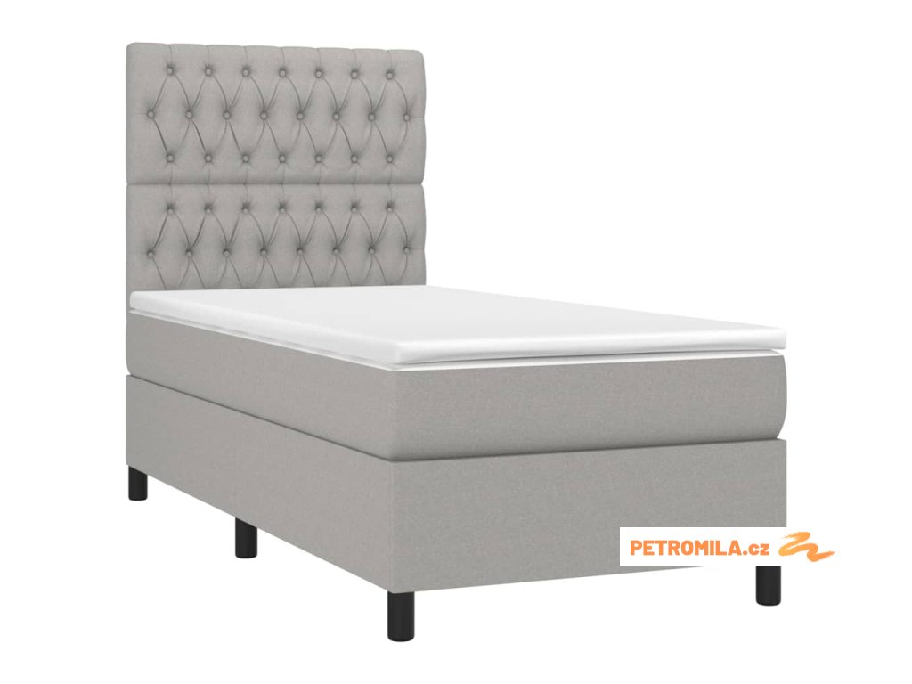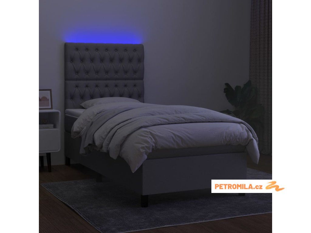 Box spring postel s matrací a LED světle šedá 90x200 cm textil
