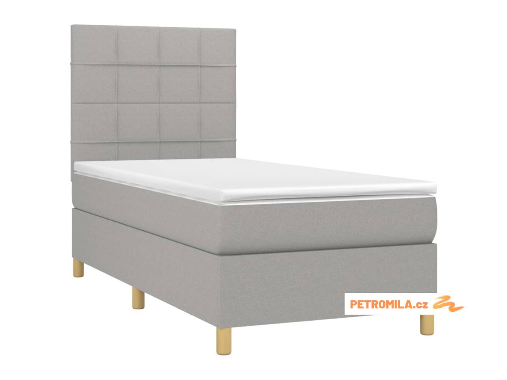 Box spring postel s matrací a LED světle šedá 90x200 cm textil