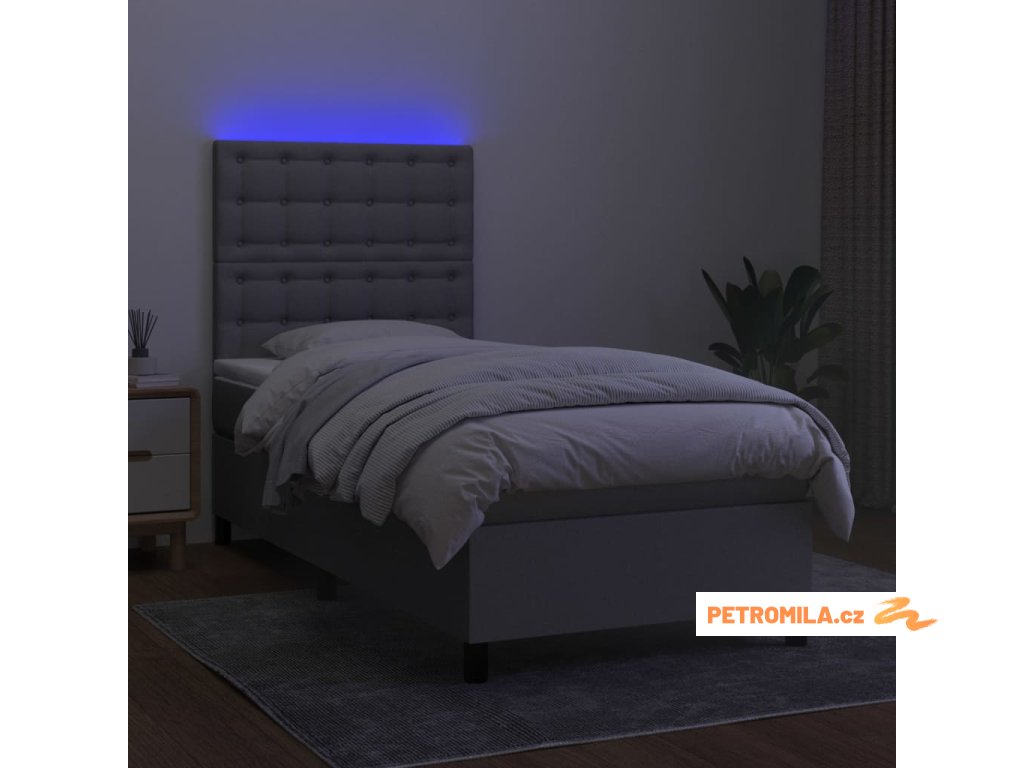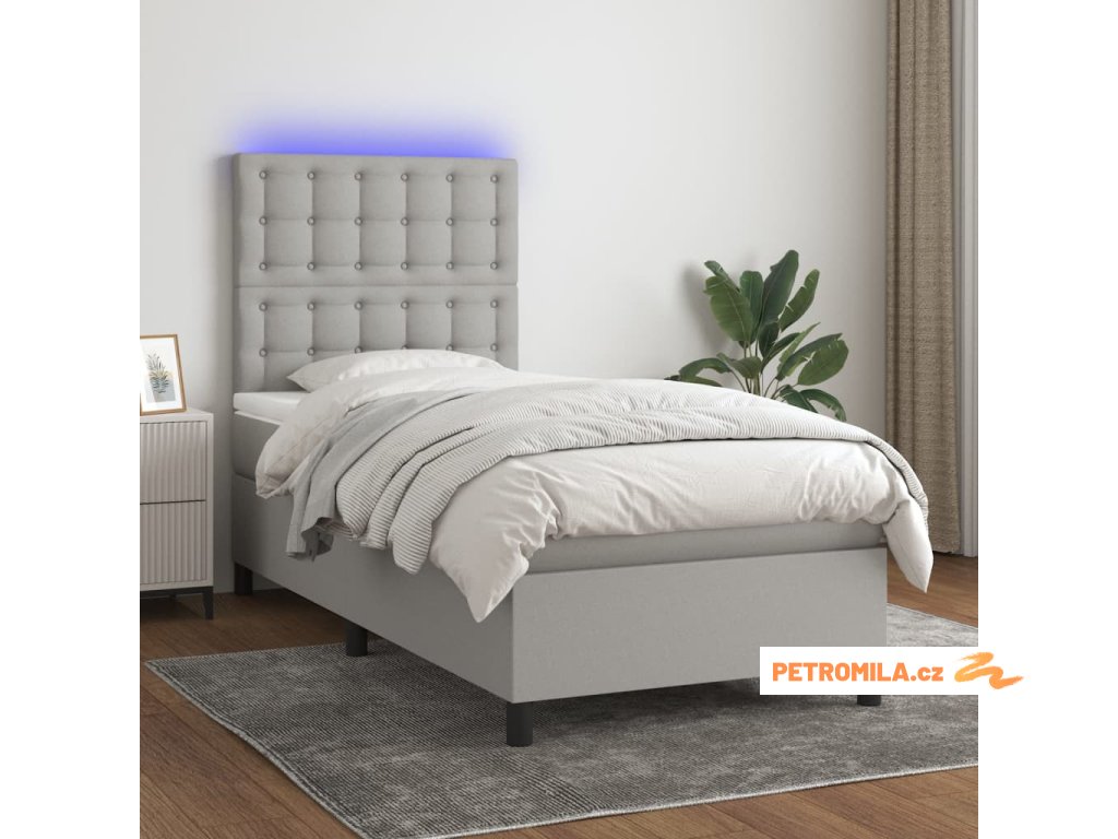 Box spring postel s matrací a LED světle šedá 90x200 cm textil