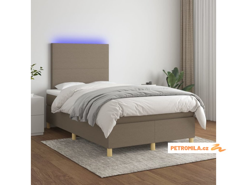 Box spring postel s matrací a LED taupe 120 x 200 cm textil