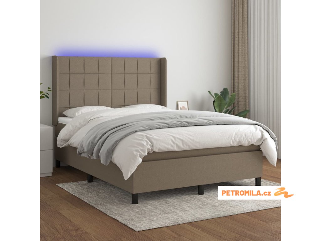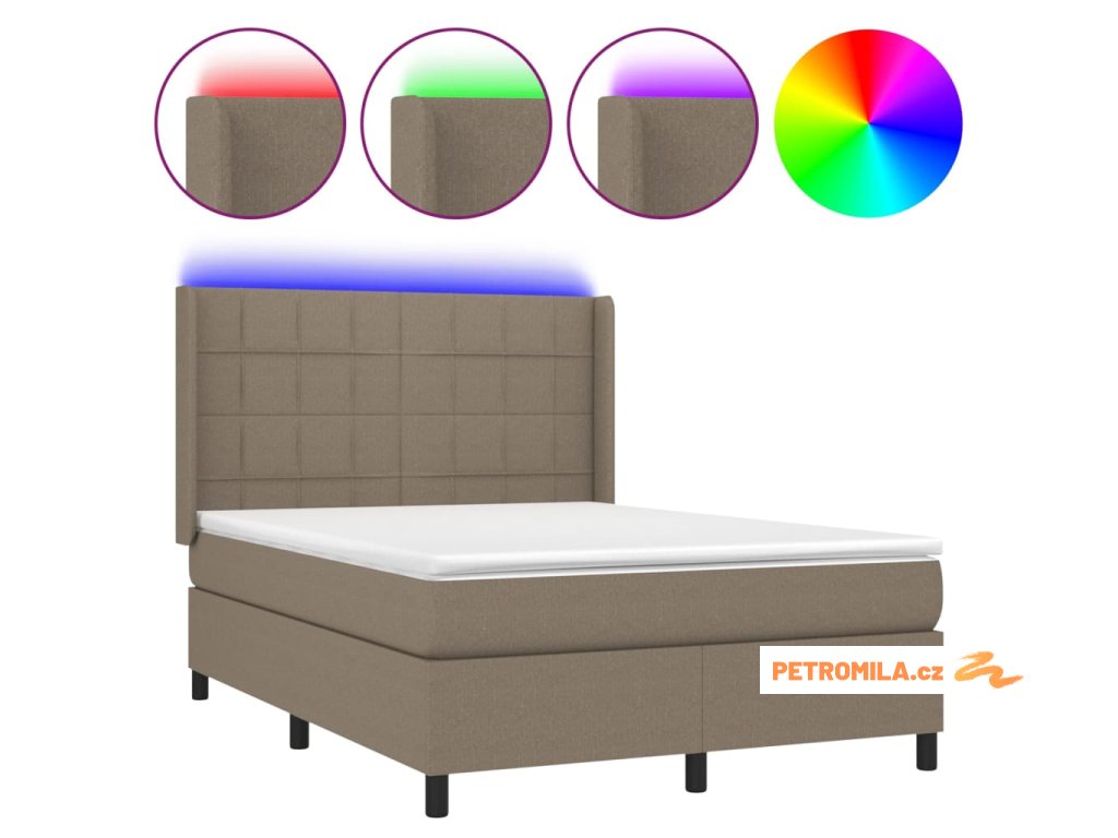 Box spring postel s matrací a LED taupe 140x190 cm textil