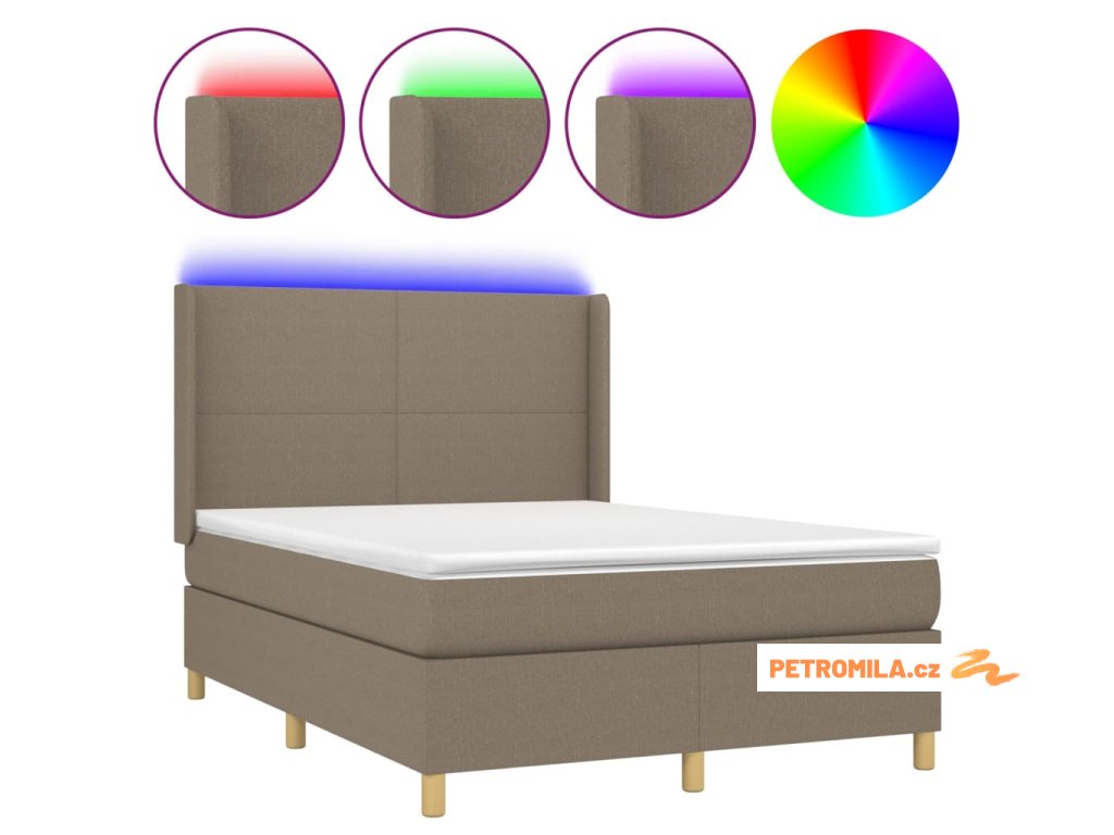 Box spring postel s matrací a LED taupe 140x200 cm textil