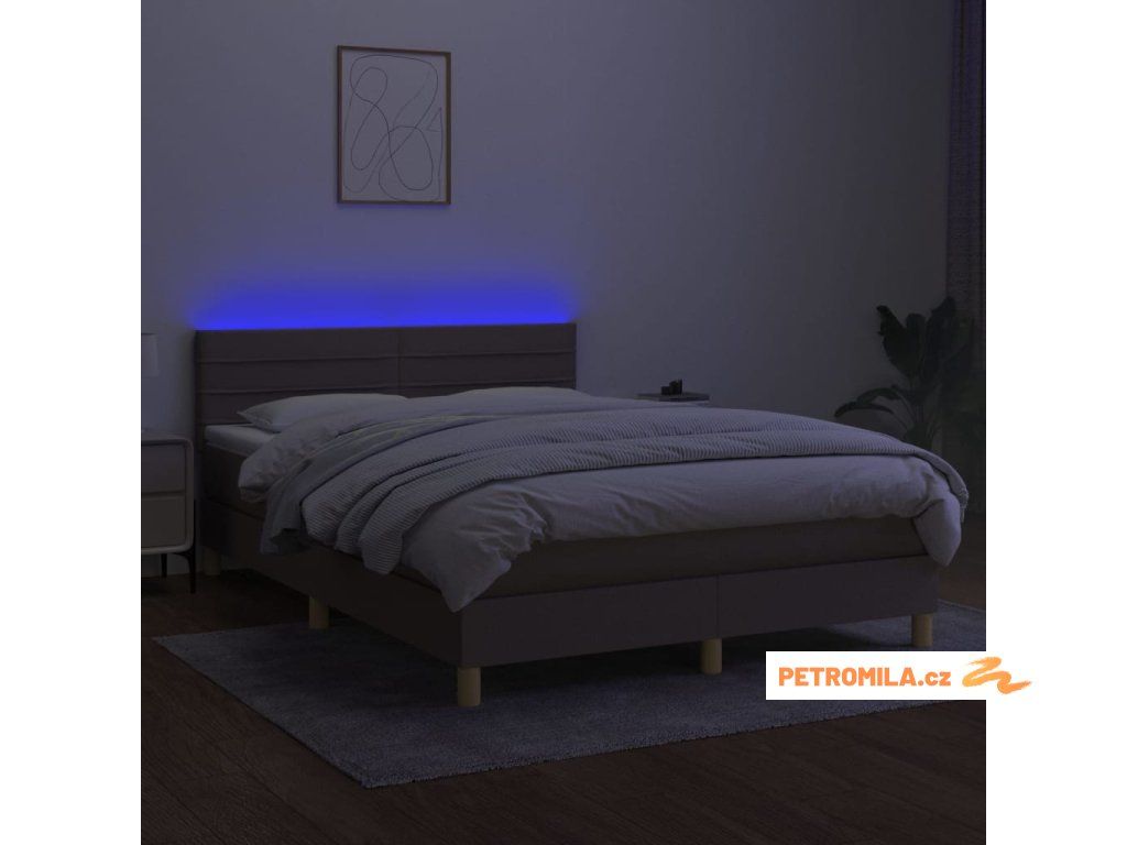 Box spring postel s matrací a LED taupe 140x200 cm textil