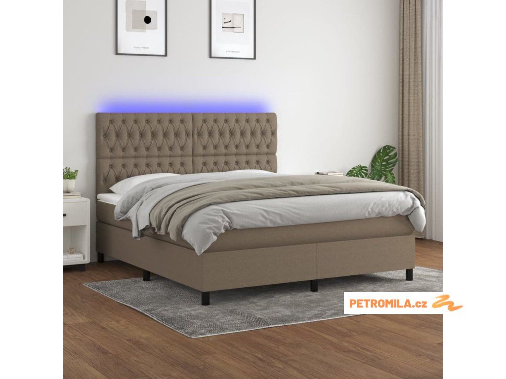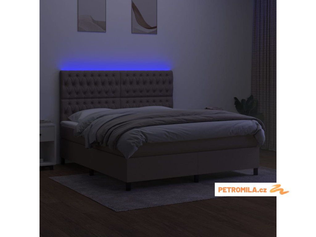 Box spring postel s matrací a LED taupe 160x200 cm textil