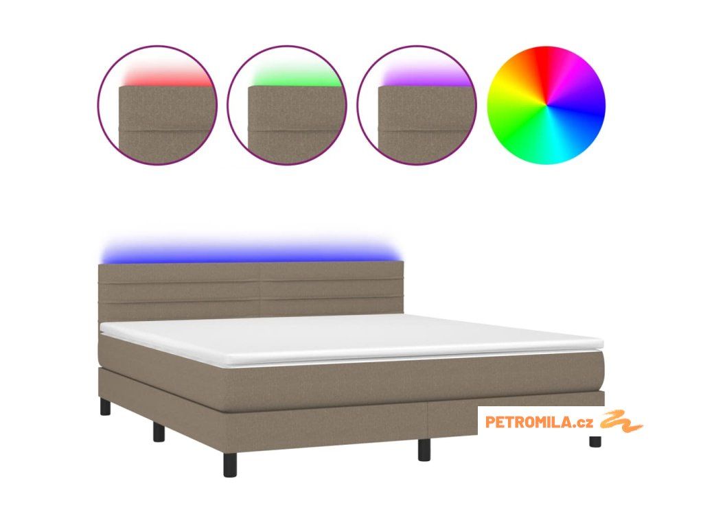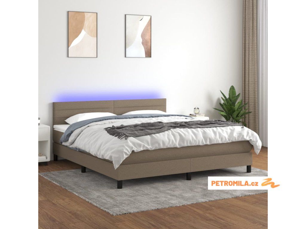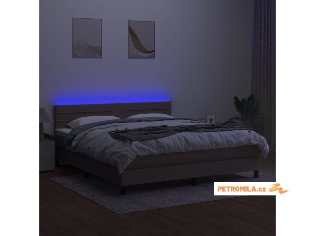 Box spring postel s matrací a LED taupe 160x200 cm textil