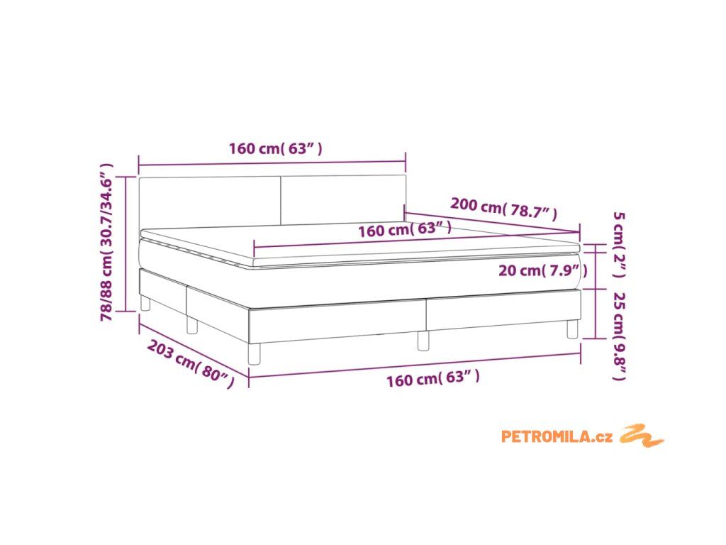- Celkové rozměry: 203 x 160 x 78/88 cm (D x Š x V)