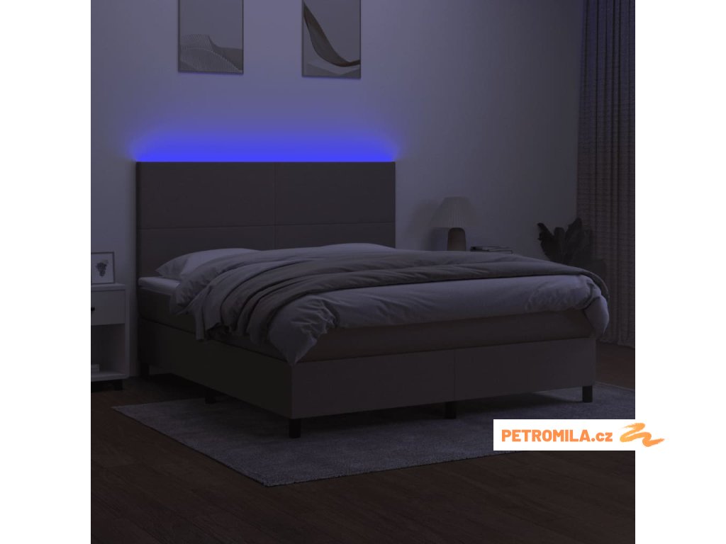 Box spring postel s matrací a LED taupe 180x200 cm textil