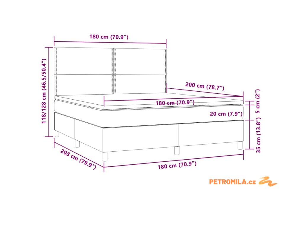 - Celkové rozměry: 180 x 200 x 20 cm (D x Š x V)
