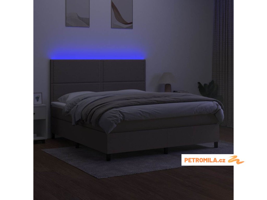 Box spring postel s matrací a LED taupe 180x200 cm textil