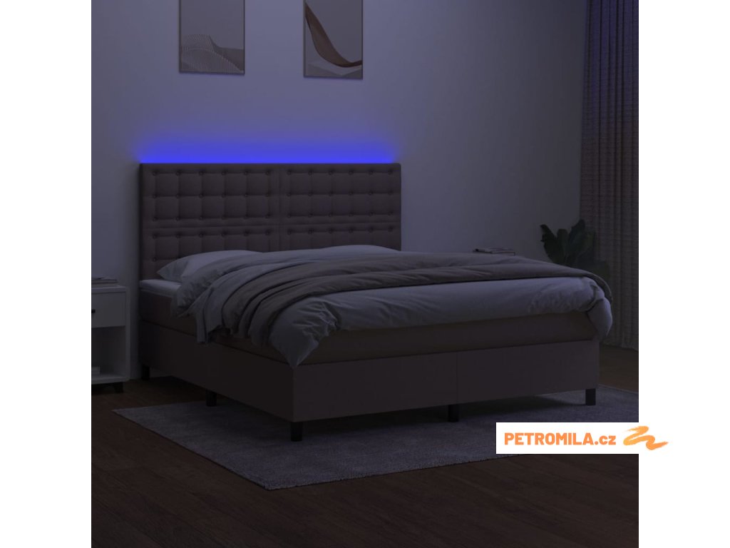 Box spring postel s matrací a LED taupe 180x200 cm textil