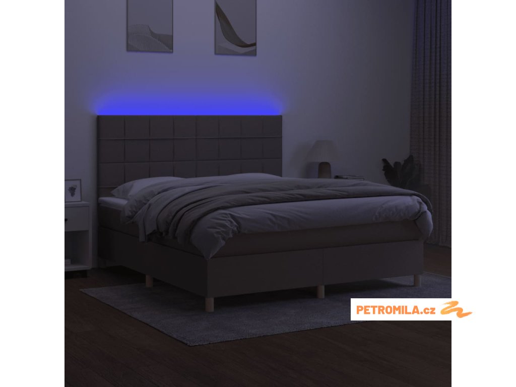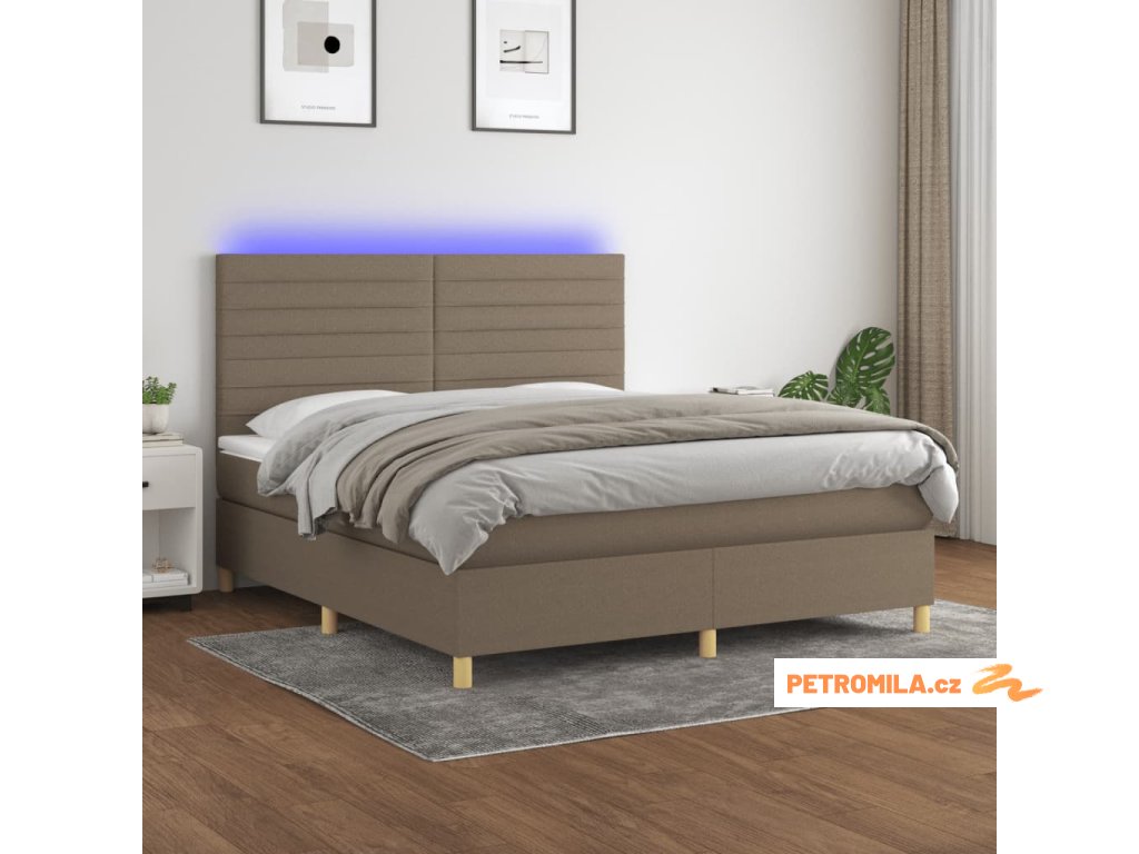 Box spring postel s matrací a LED taupe 180x200 cm textil