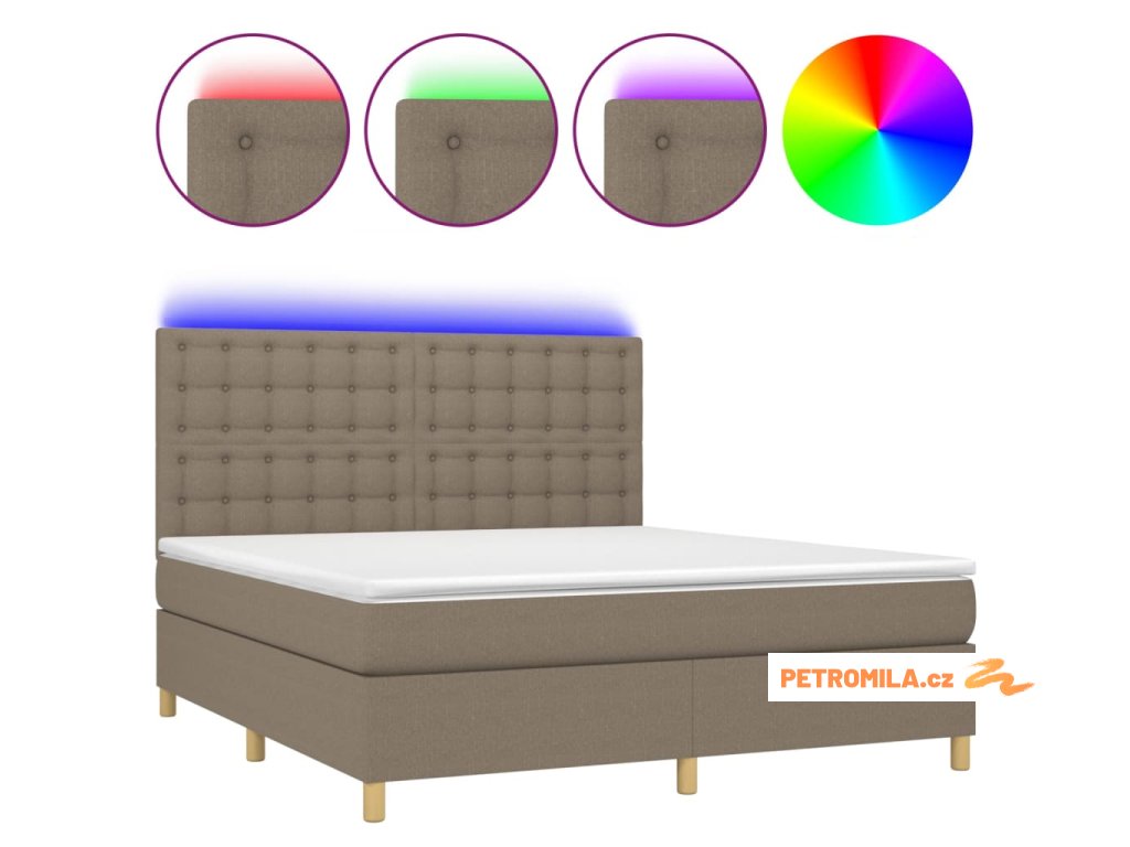 Box spring postel s matrací a LED taupe 180x200 cm textil