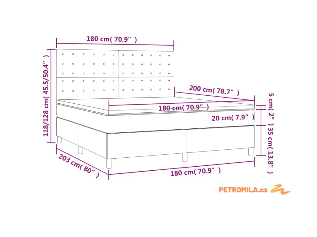 - Celkové rozměry: 180 x 200 x 20 cm (D x Š x V)