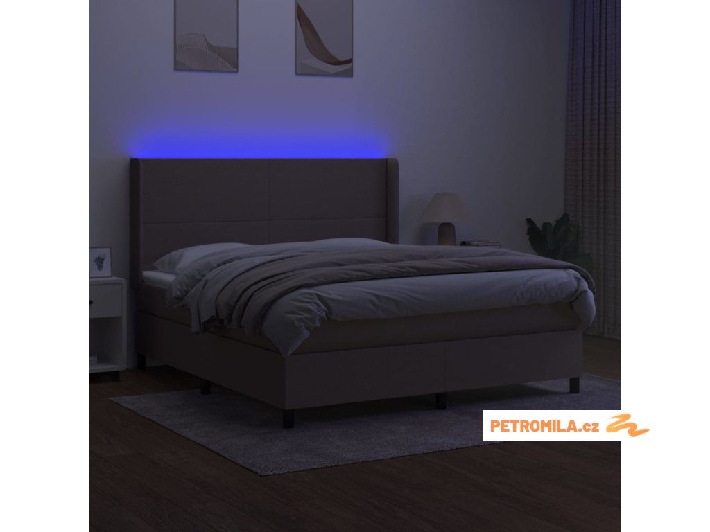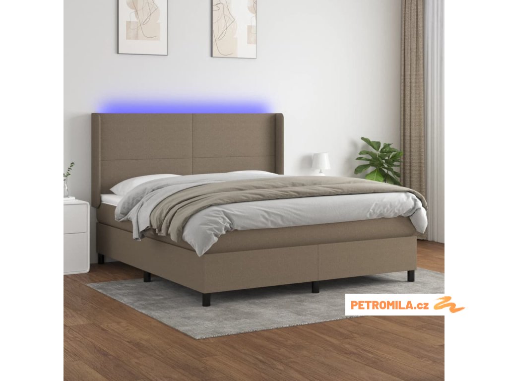 Box spring postel s matrací a LED taupe 180x200 cm textil