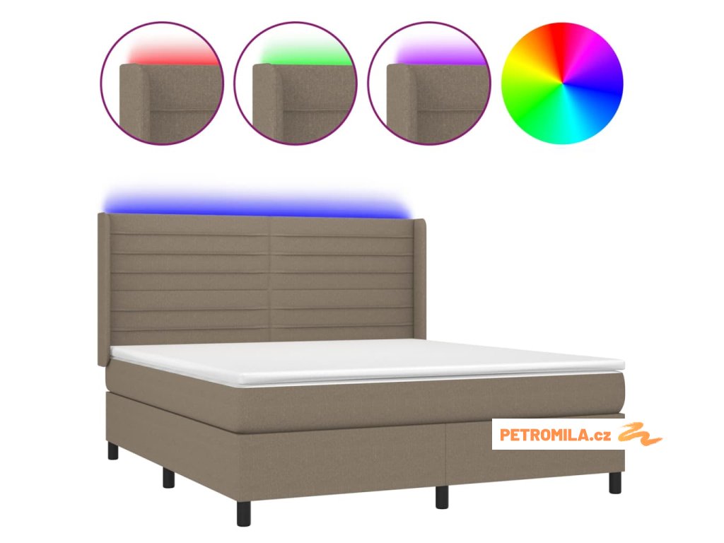Box spring postel s matrací a LED taupe 180x200 cm textil